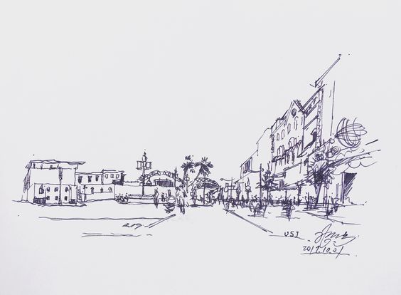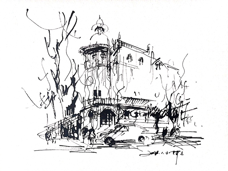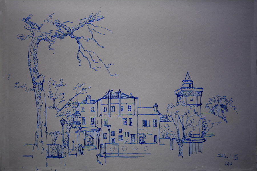 钢笔淡彩建筑风景速写