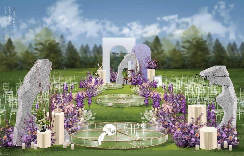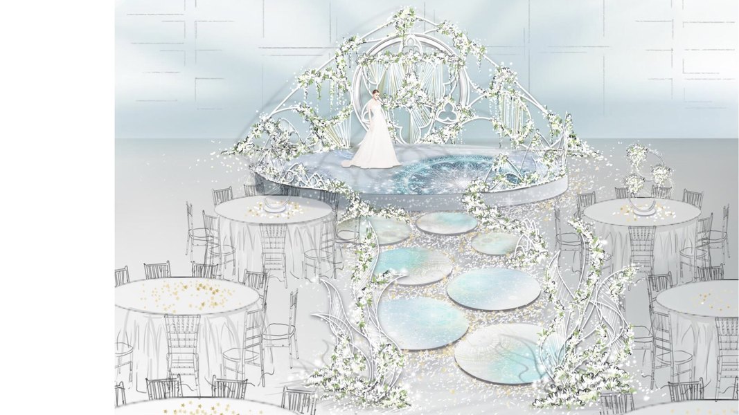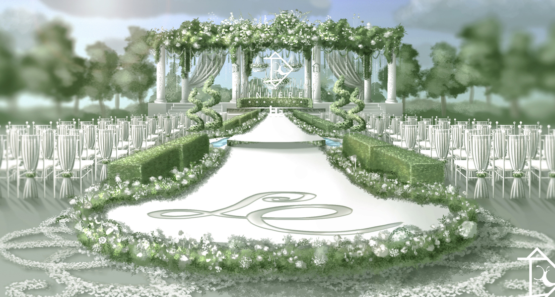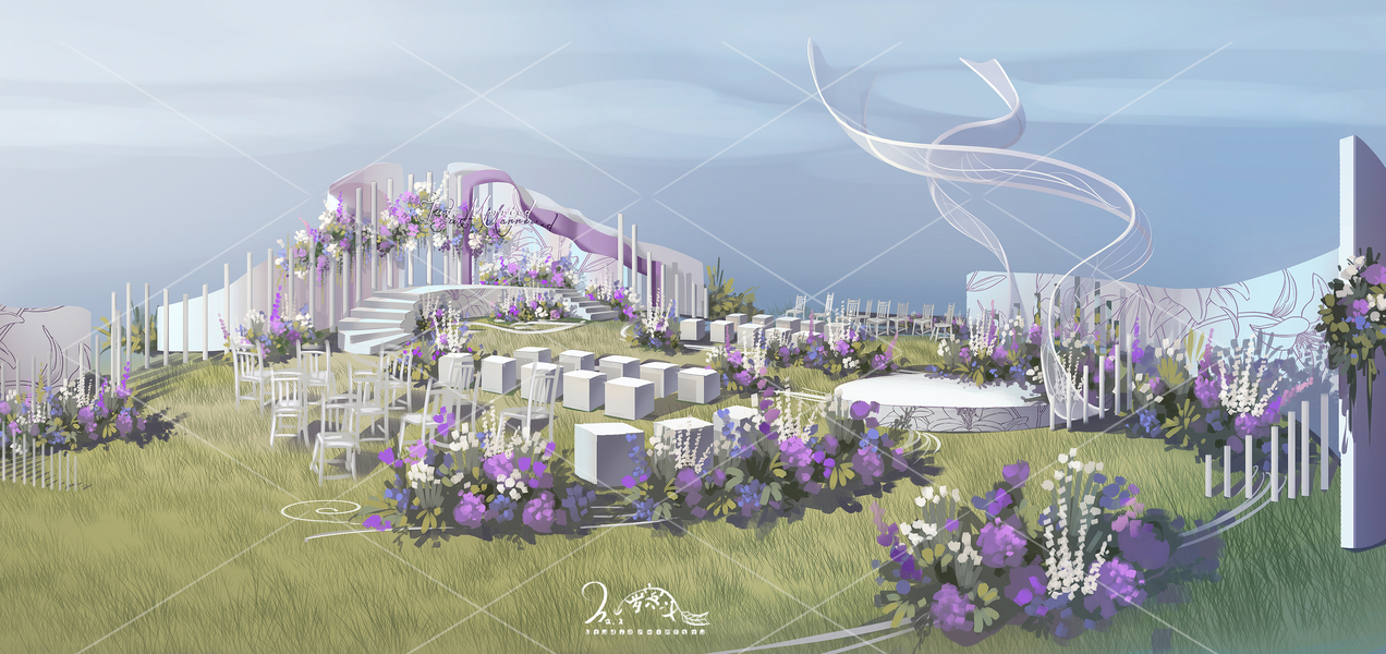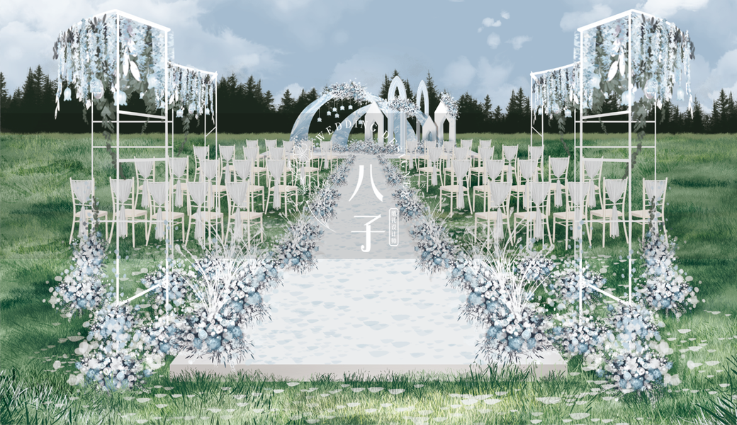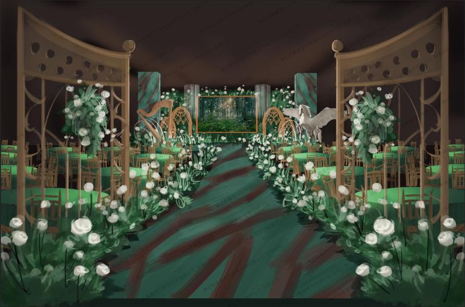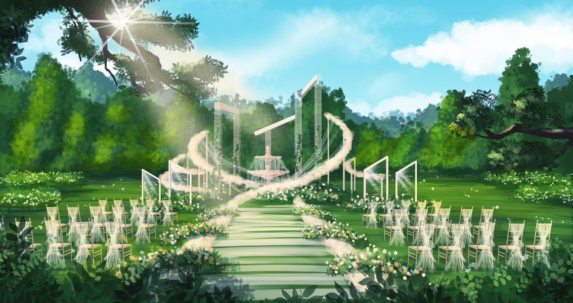 户外白绿色婚礼手绘图 婚礼设计图 草坪婚礼