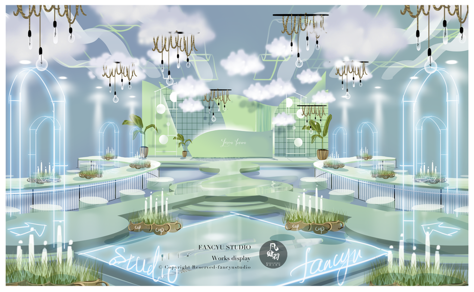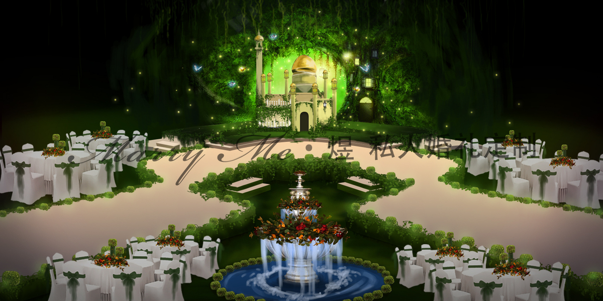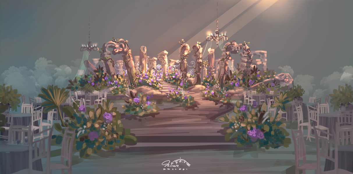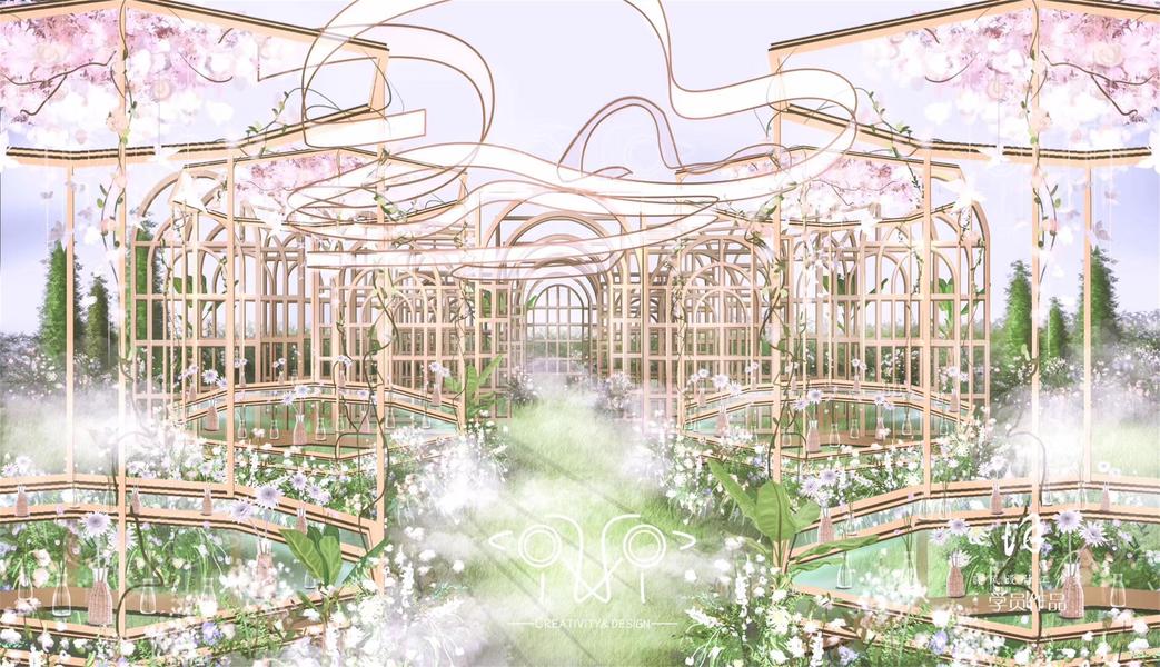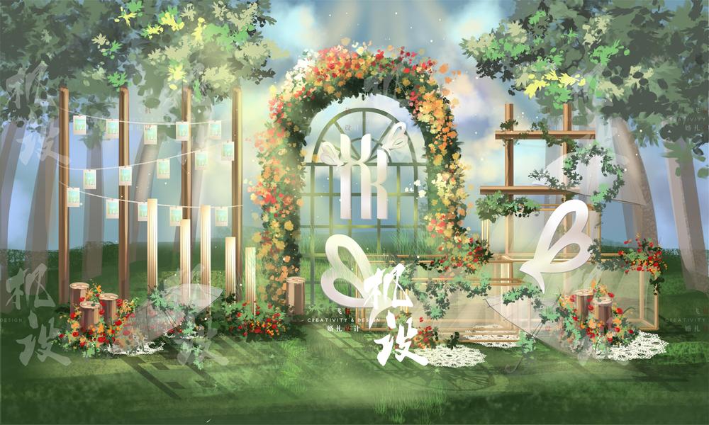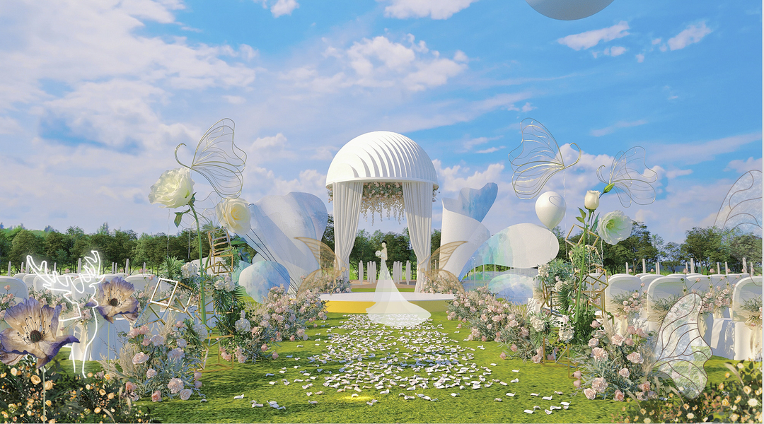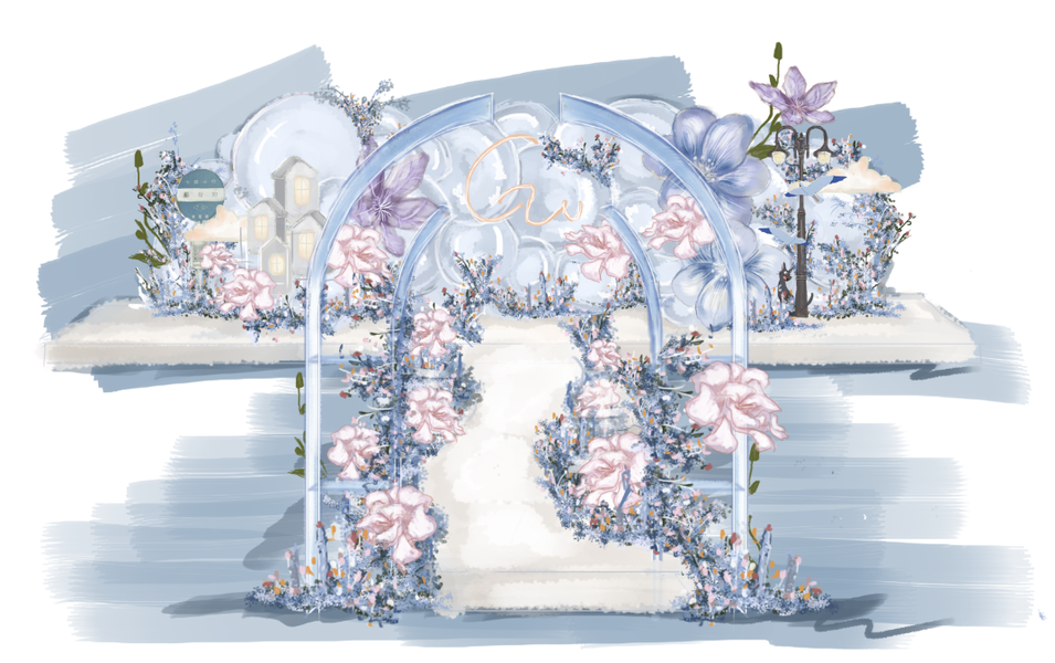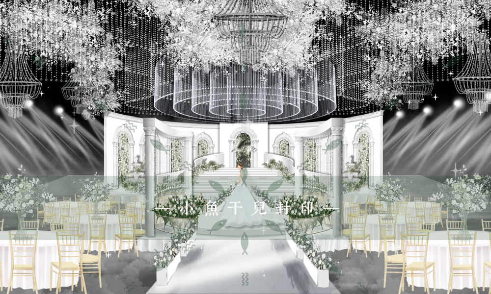 户外白绿色婚礼手绘图 婚礼设计图 草坪婚礼