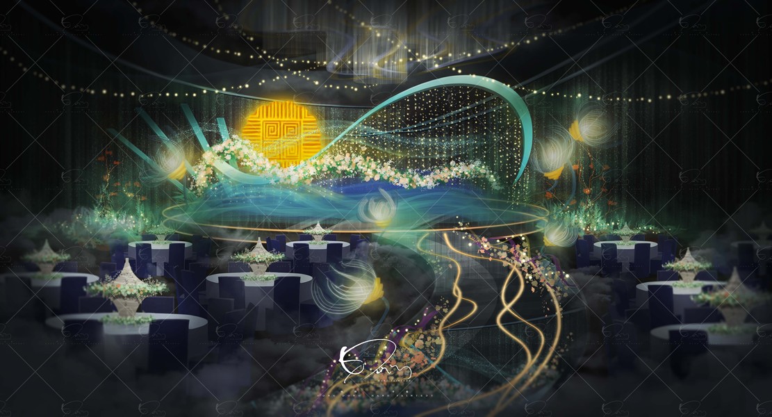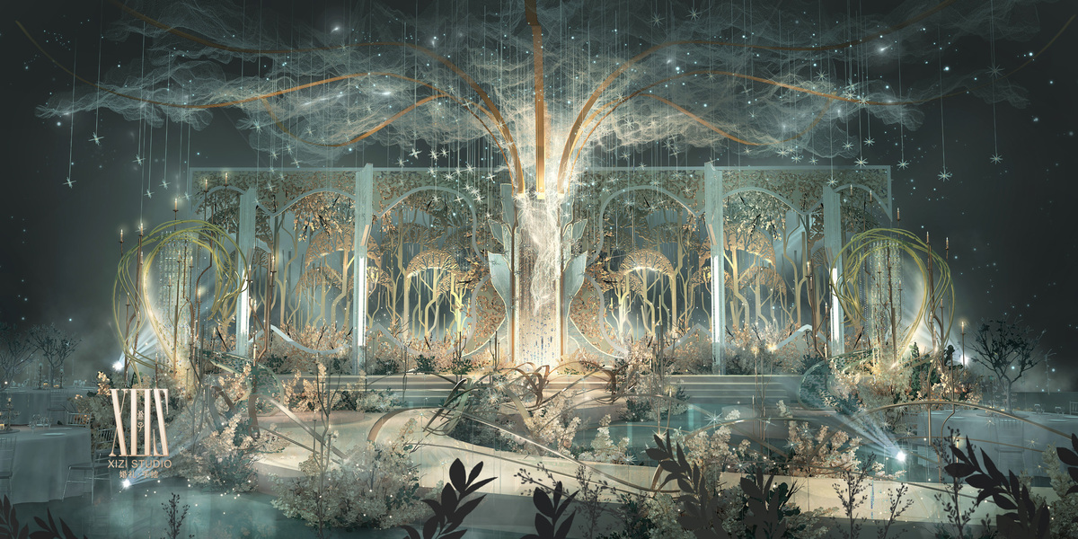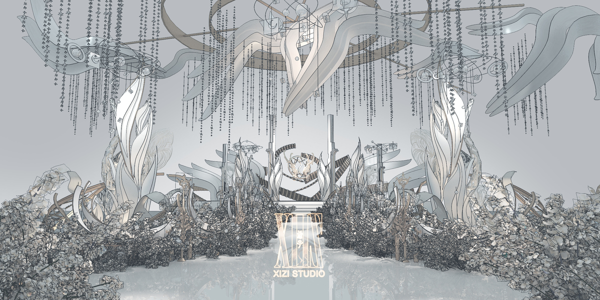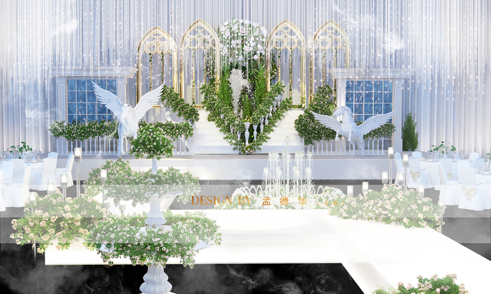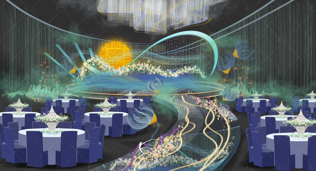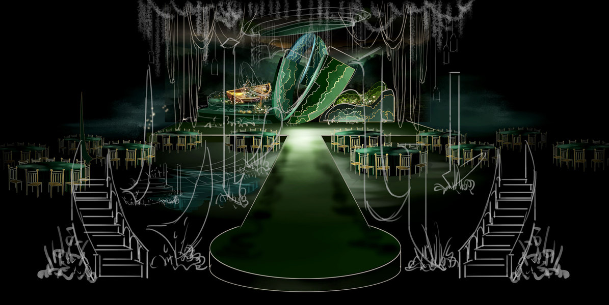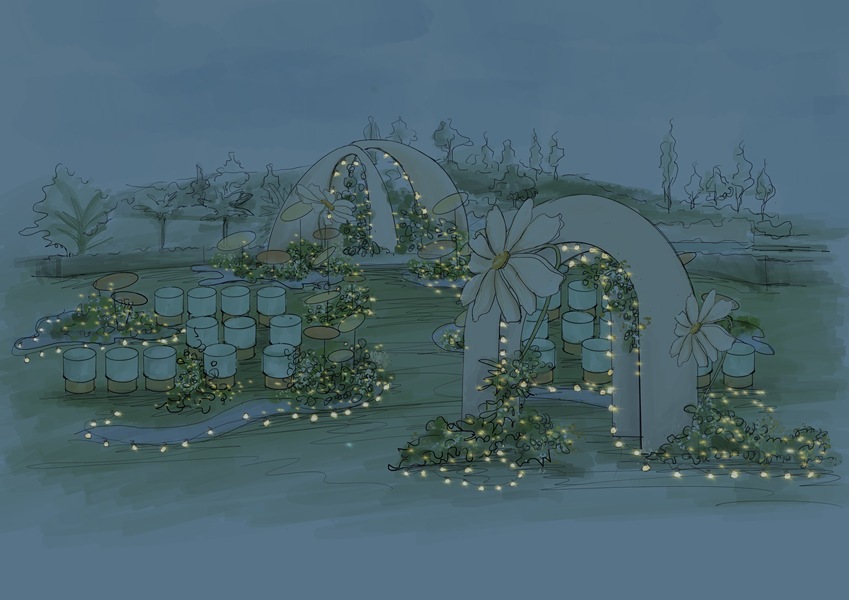 户外白绿色婚礼手绘图 婚礼设计图 草坪婚礼
