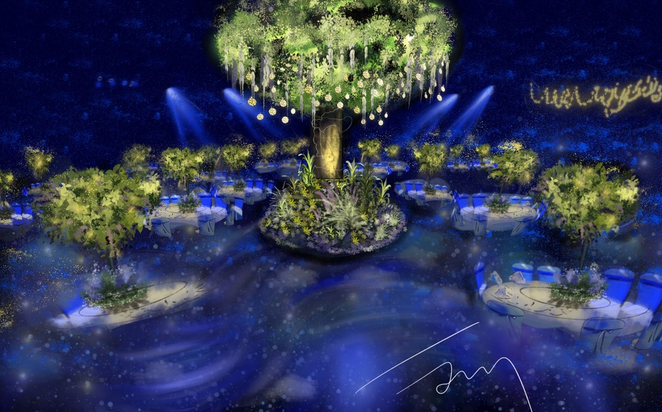 【婚礼手绘】纸面手绘—户外青花瓷婚礼