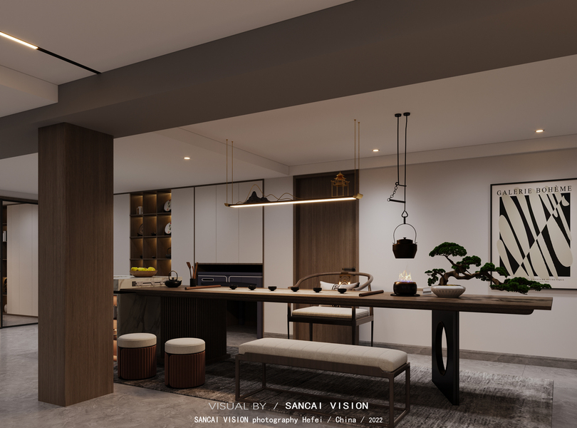 新中式装修风格,淡而雅,予人的观感柔和而宁静