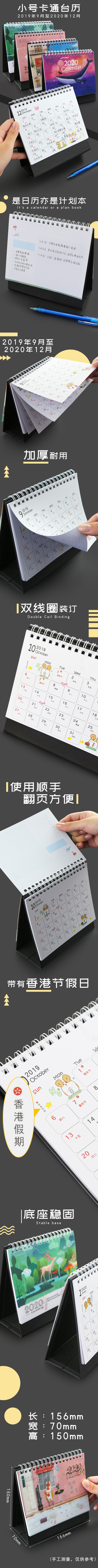 2020年黑色小号卡通台历