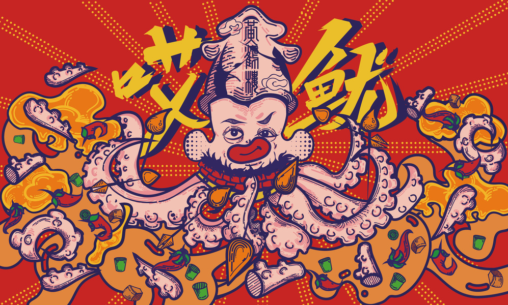 餐饮VI-热干面品牌设计《哎鱿!辣么牛》
