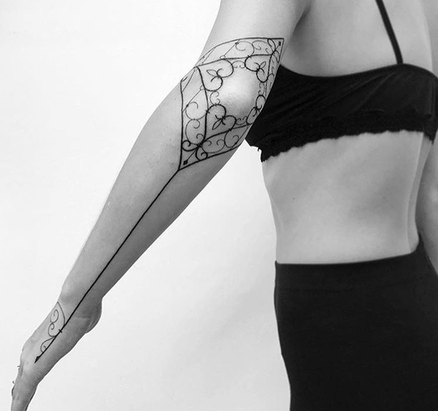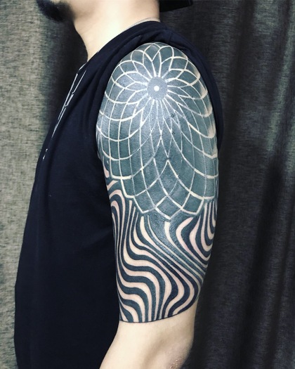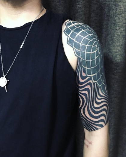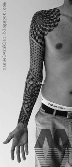线条风格黑灰主题结合几何纹身赏析.宝鸡纹身