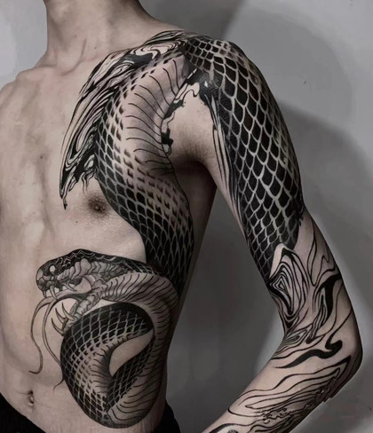 超炫的黑臂纹身,无锡刘潭纹身店带你领略不一样的魅力