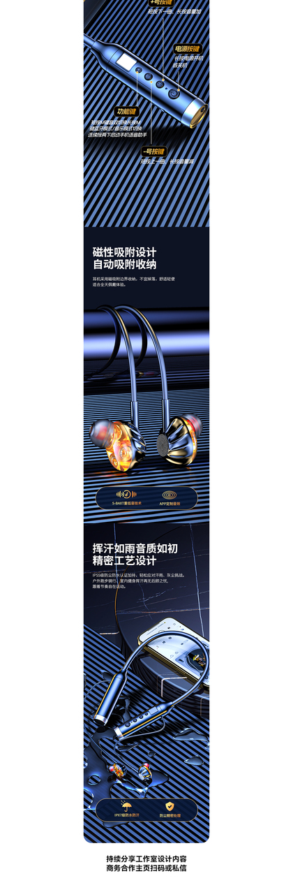 挂脖耳机 蓝牙耳机 详情页设计 建模渲染效果图