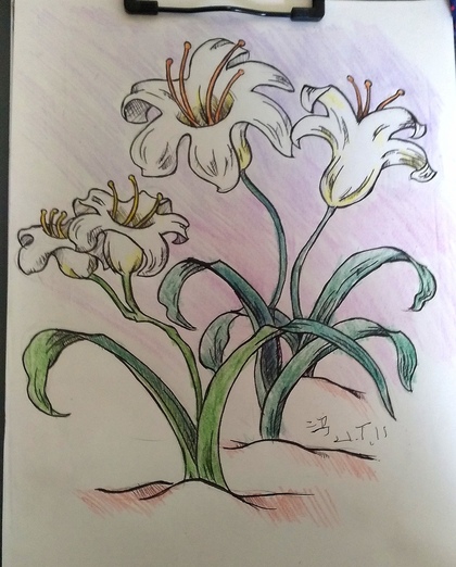 彩色铅笔手绘画 ---花 3