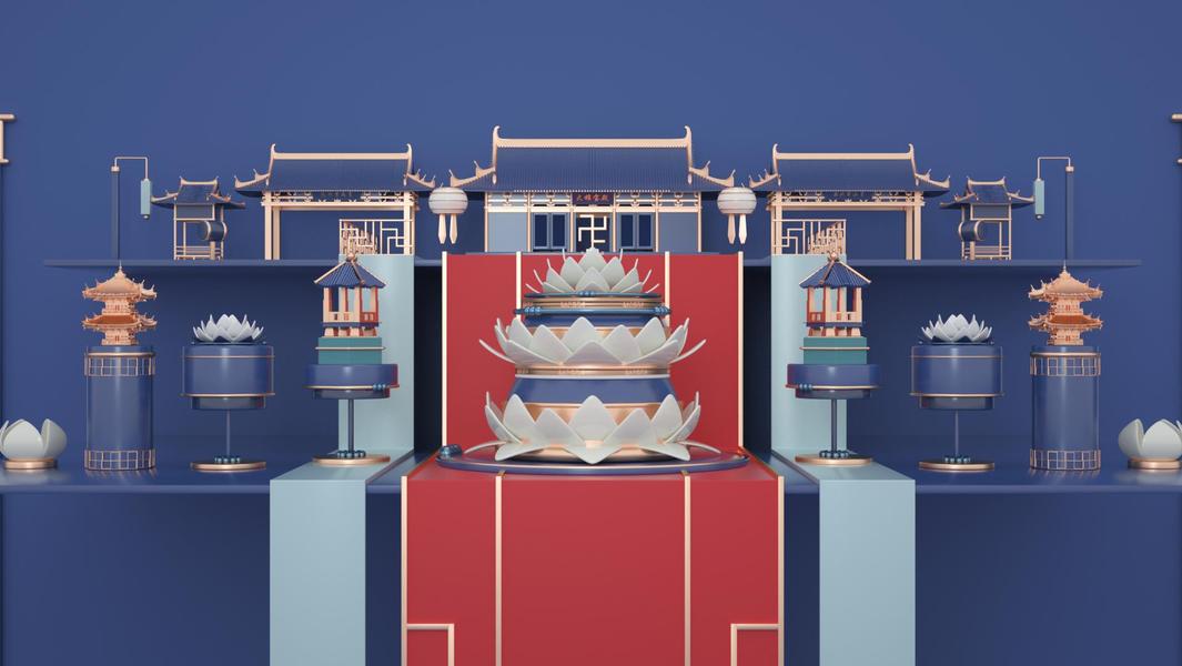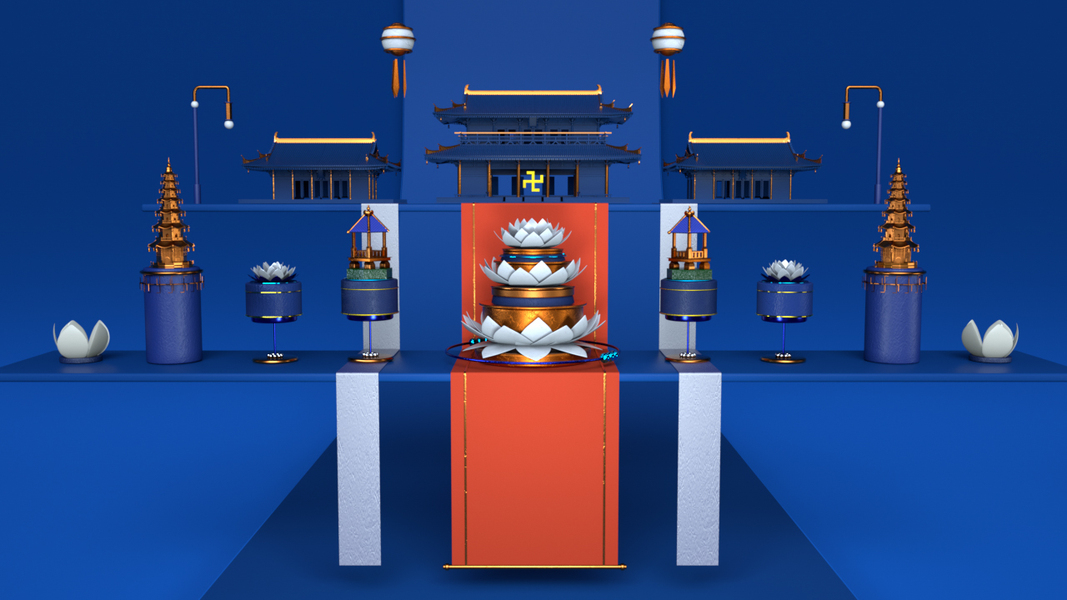 C4D短片制作/中国古建筑/花开见佛 佛系白莲花