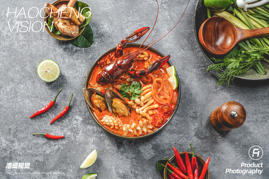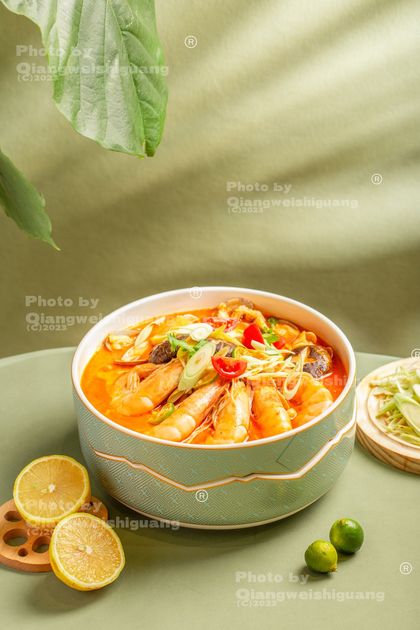 泰国菜泰式料理美食静物摄影纯黑背景风格