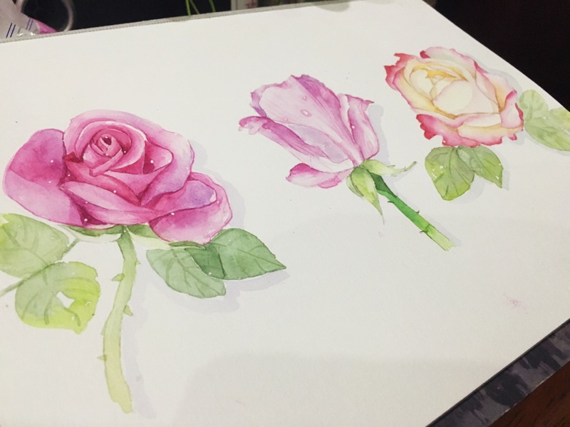 水彩插画植物花卉临摹玫瑰向日葵月季花