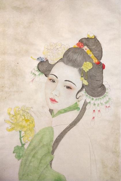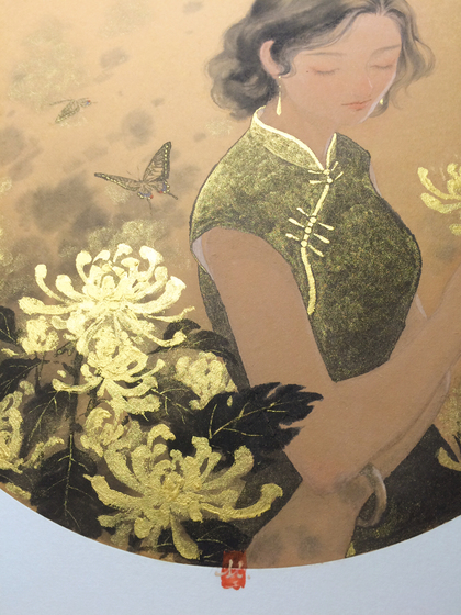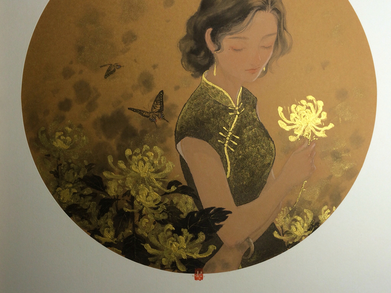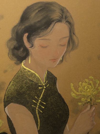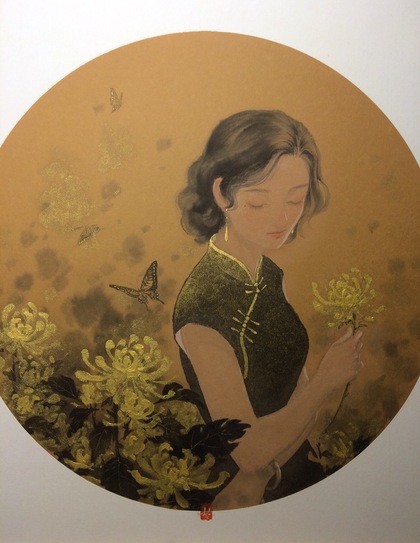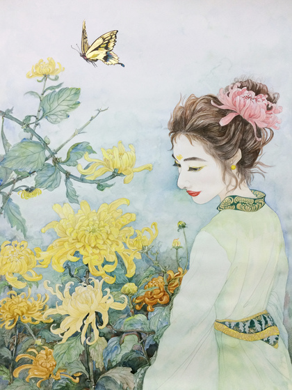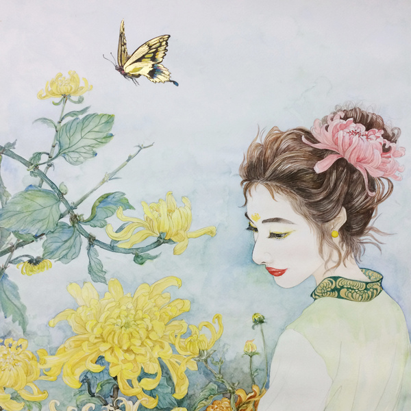 早期新国画|《默菊》手绘古风国风水墨画工笔艺术插画