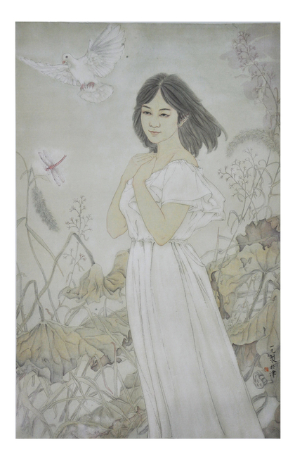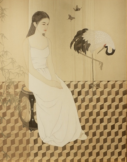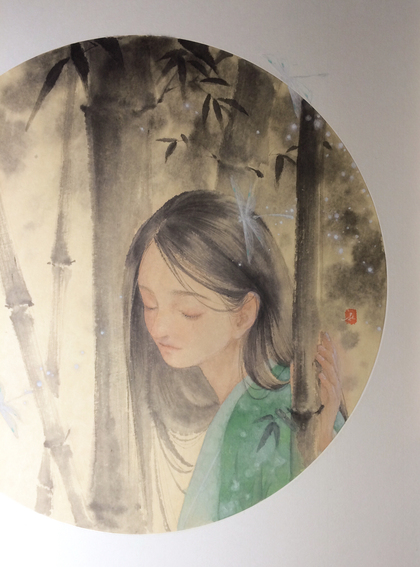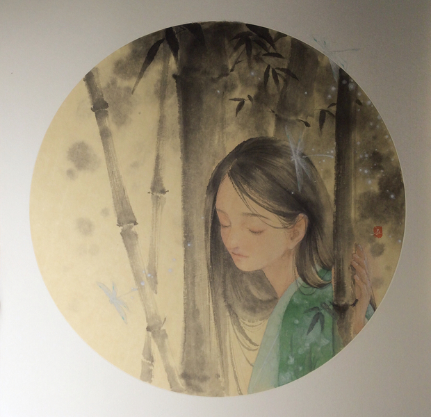 早期新国画|《思竹》手绘古风国风水墨画工笔艺术插画