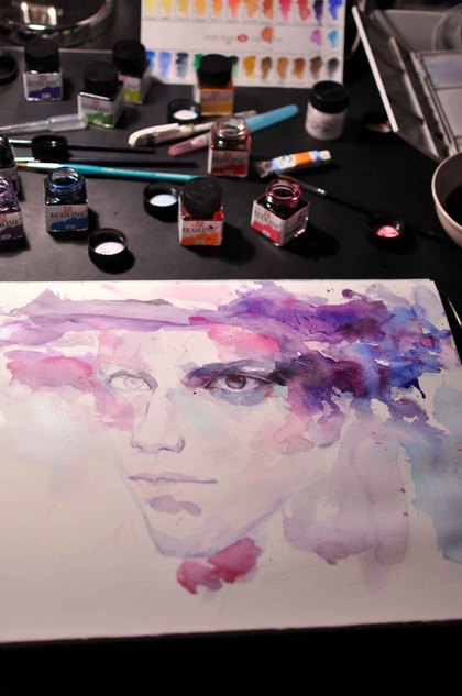 差点就画不下去的水彩人像