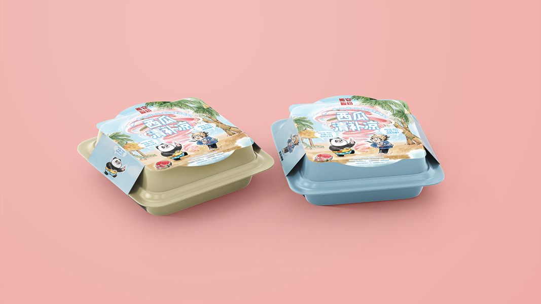熊它酸奶- 西瓜清补凉/冰浮夏主题插画/食品包装设计