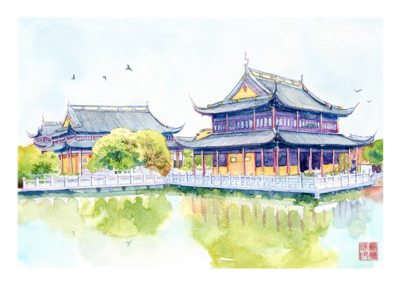 钢笔淡彩教程07,国风可以这样玩,带步骤图