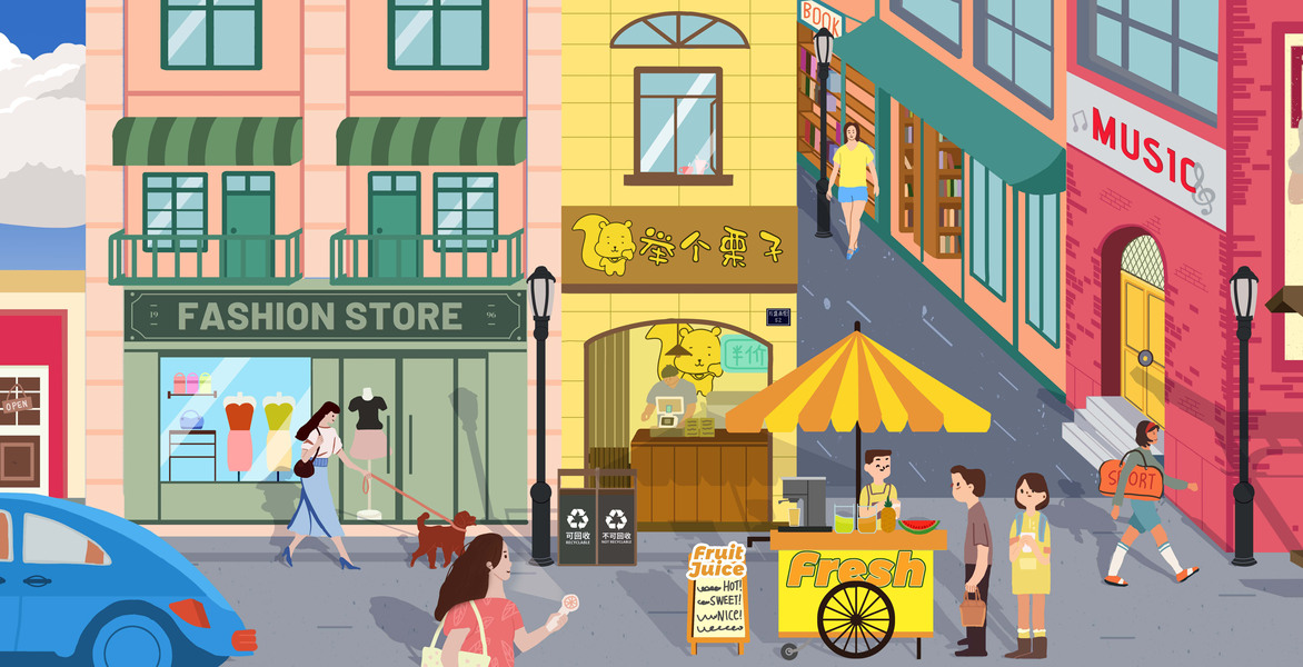 2.5D城市旅游交通游乐园生活购物AI场景UI插画图形设计