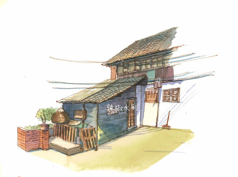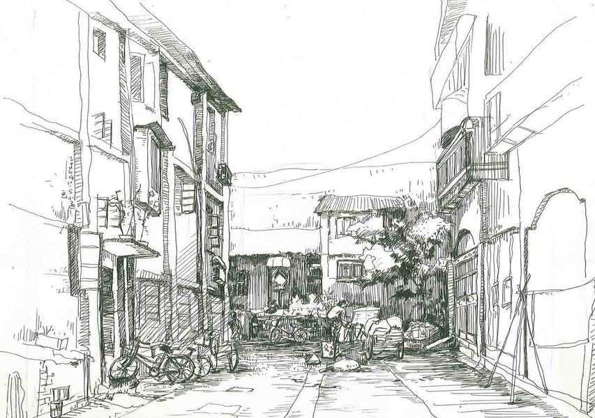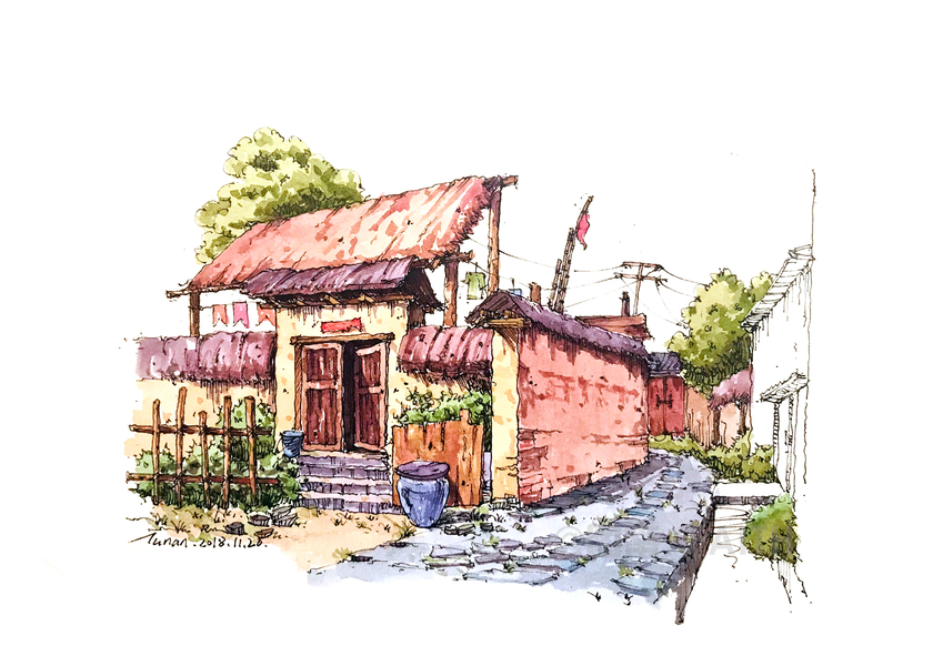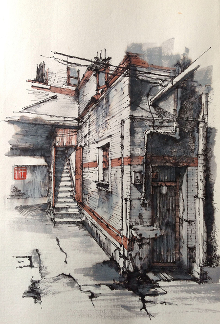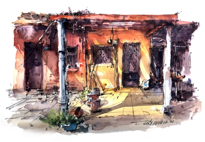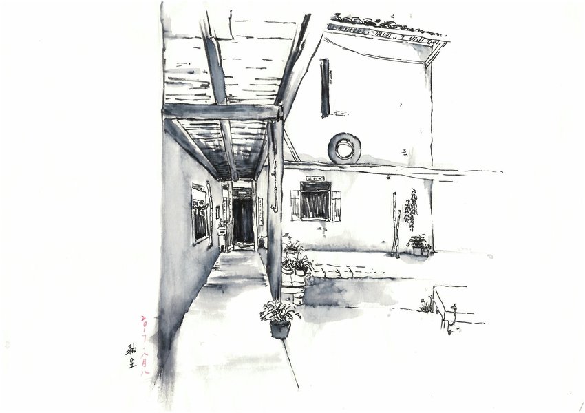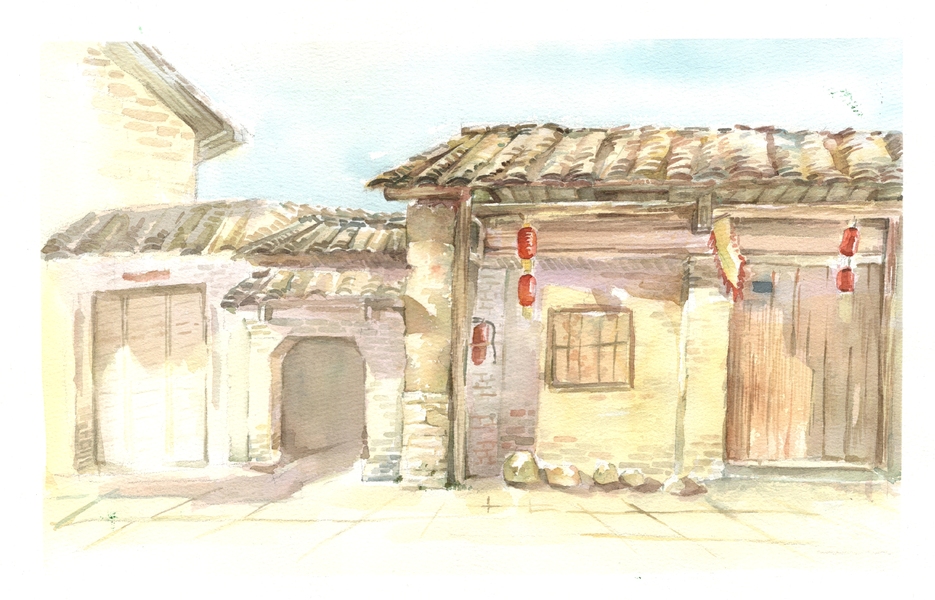 王家大院手绘-山西古建筑系列手绘2-铅笔淡彩