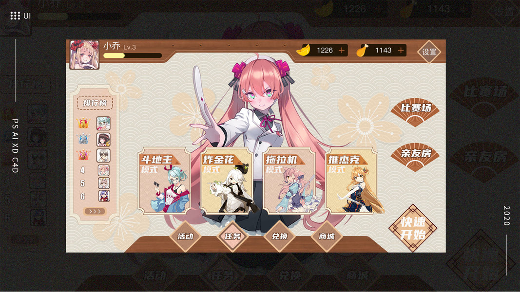#游戏UI交互设计练习#每日任务&技能&战斗界面#