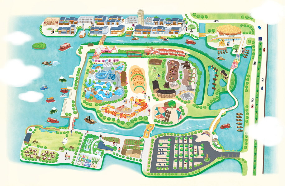 手绘景区地图插画