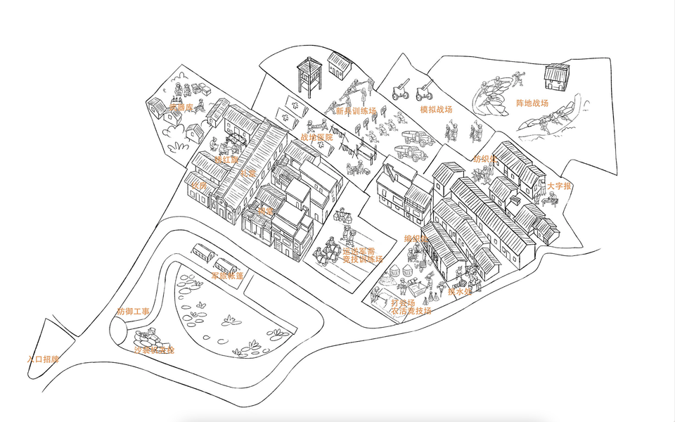 红军基地手绘地图漫画插画导览牌旅游景区