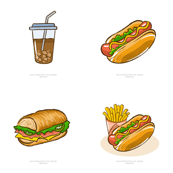 手绘快餐食物元素
