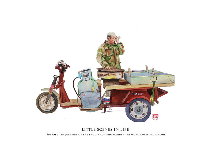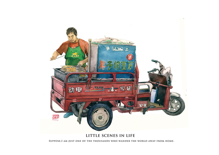 人间烟火系列水彩画