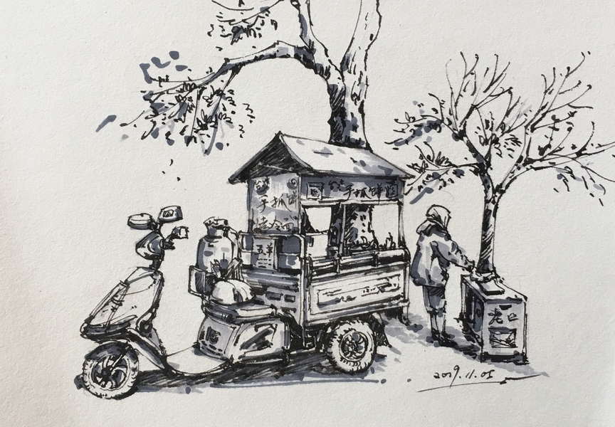 钢笔淡彩写生