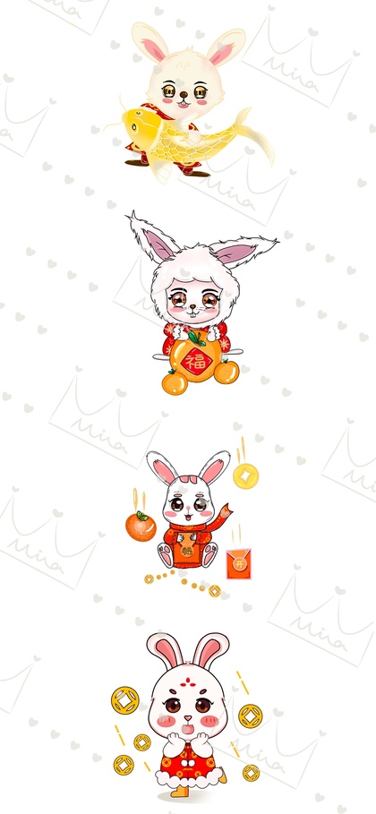 卡通兔子 新年兔子 兔年插画 国朝兔子
