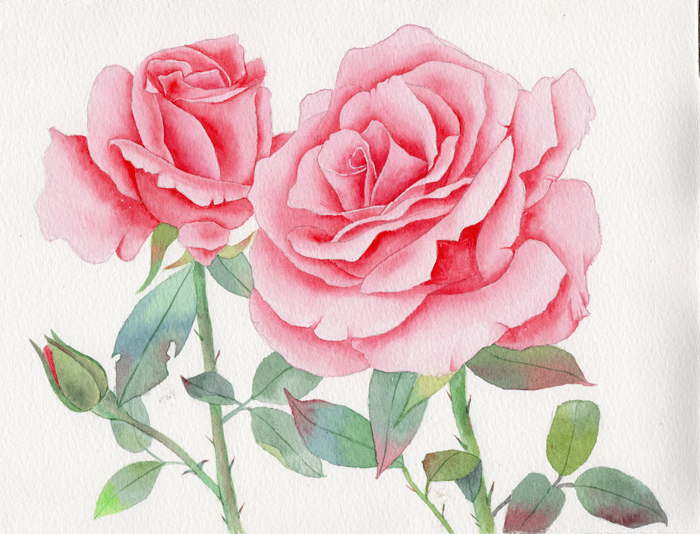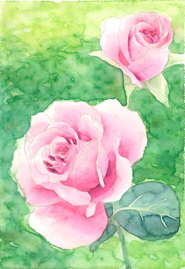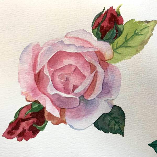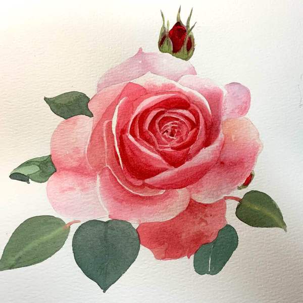 水彩画-练习的花卉 叶子 玫瑰花 康乃馨 杏叶