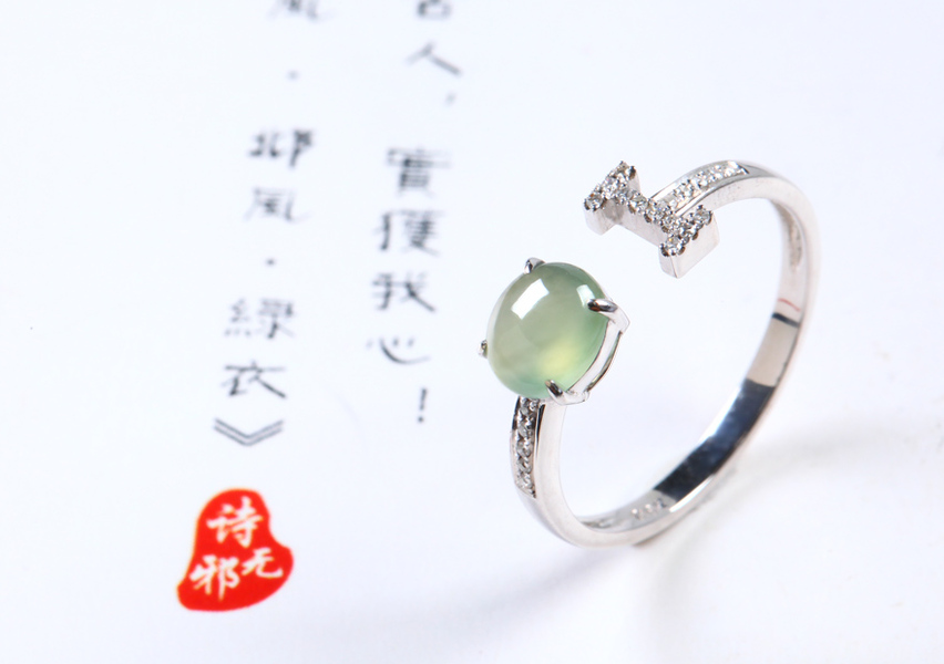 翡翠摄影-阳绿蛋面镶嵌戒指
