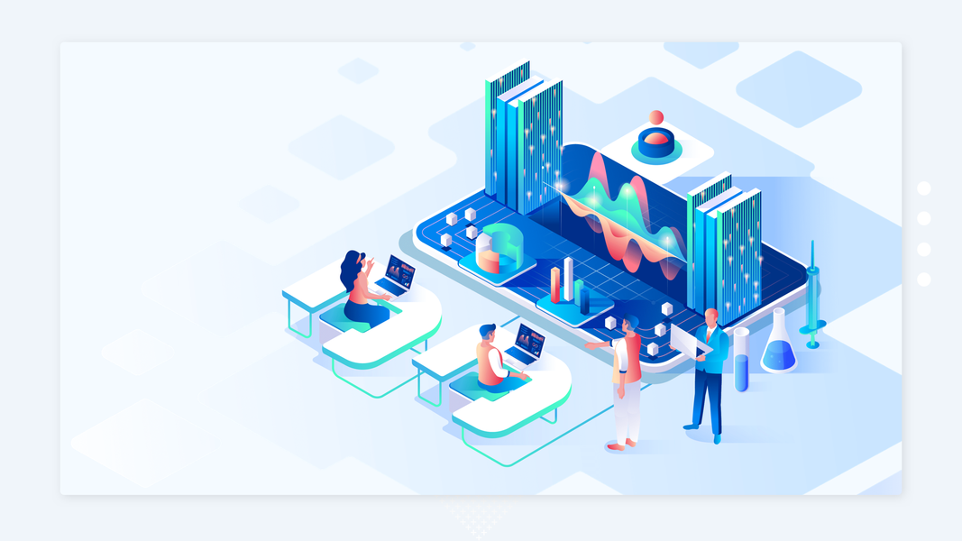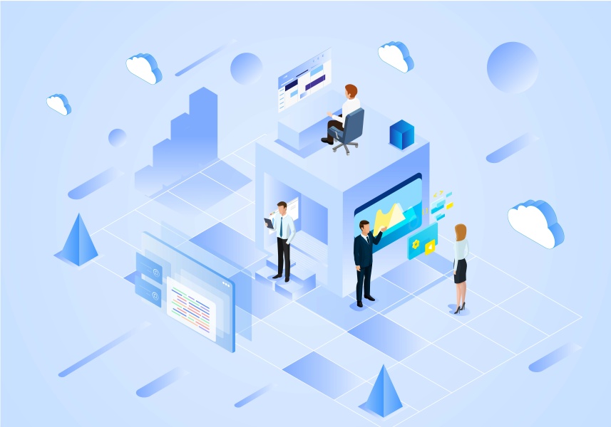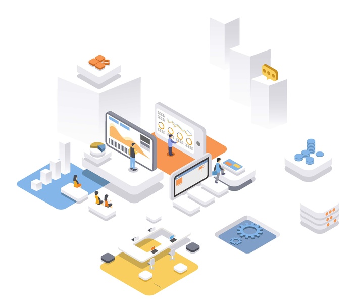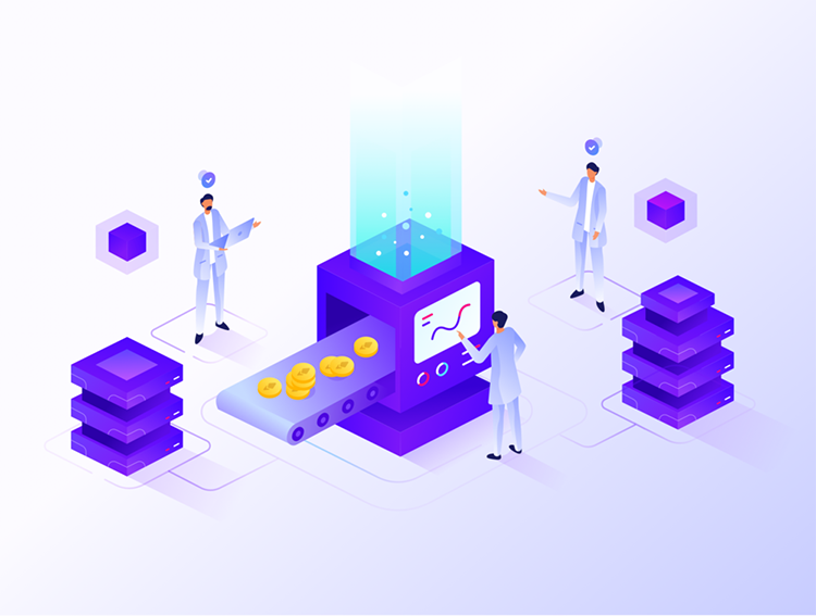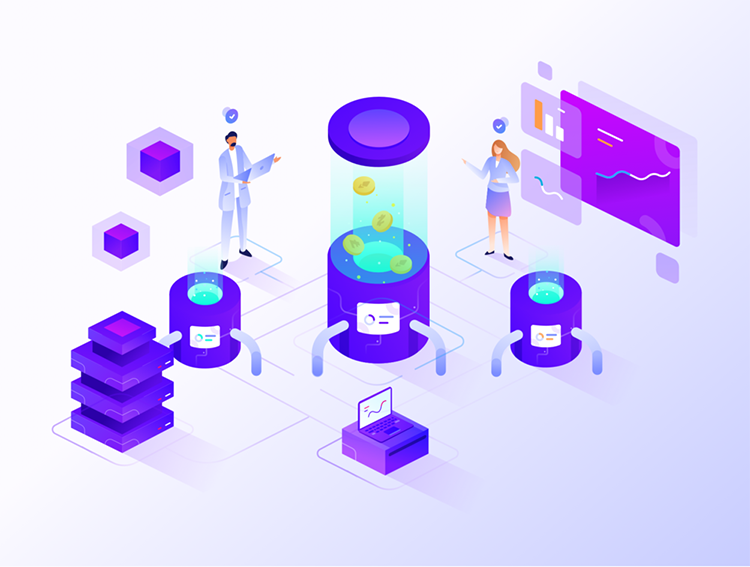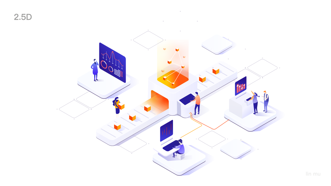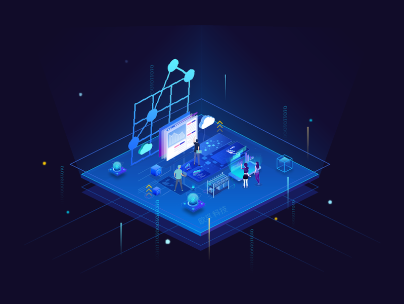2.5D智能数据区块链比特币科技专题页插画海报设计素材
