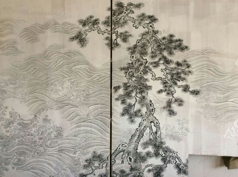 寺庙神象古画纯手工敲打制作紫铜壁画