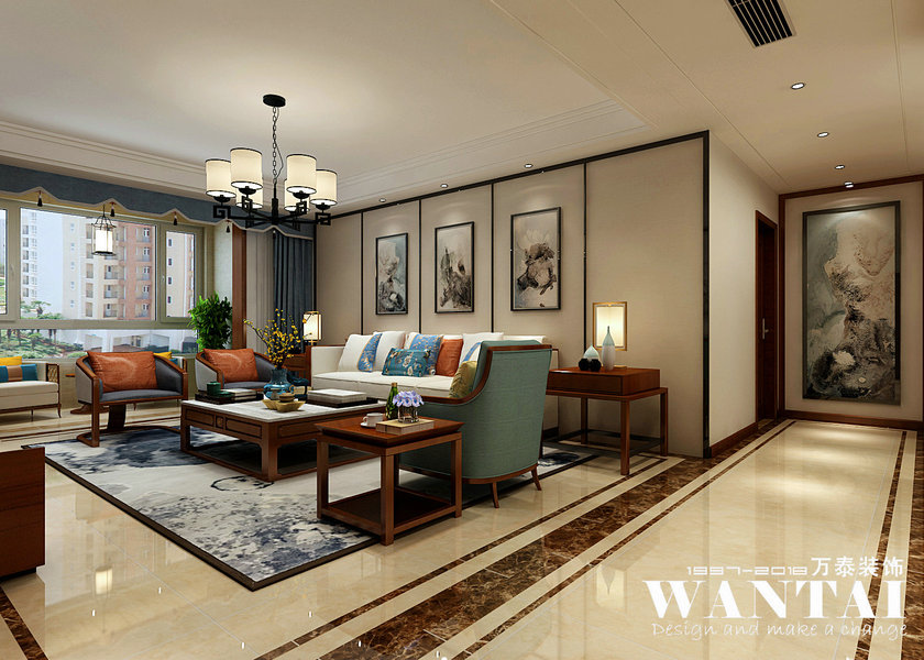 泰安万泰装饰|泰安卧龙大观145平新中式装修效果图案例