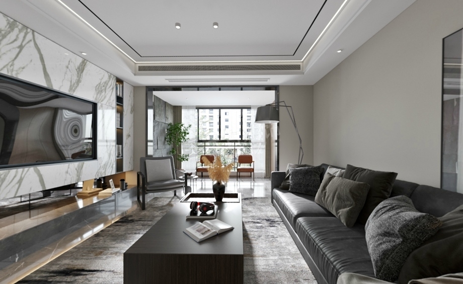 天空云镜装修,大平层现代简约风格设计,完工实景