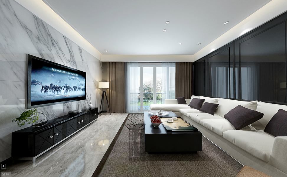 融创国宾壹号院装修案例,现代简约黑白灰大平层设计图