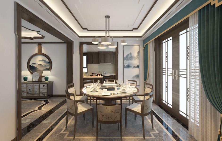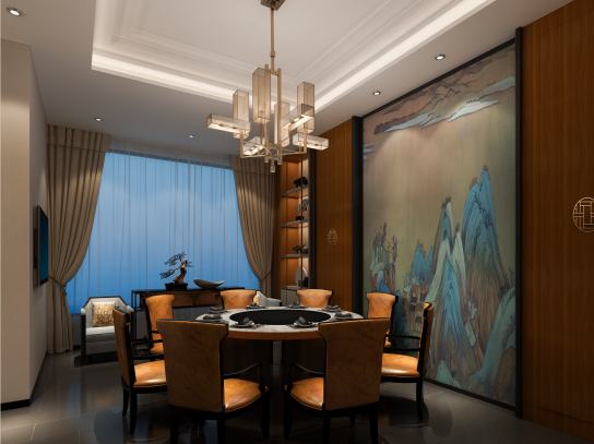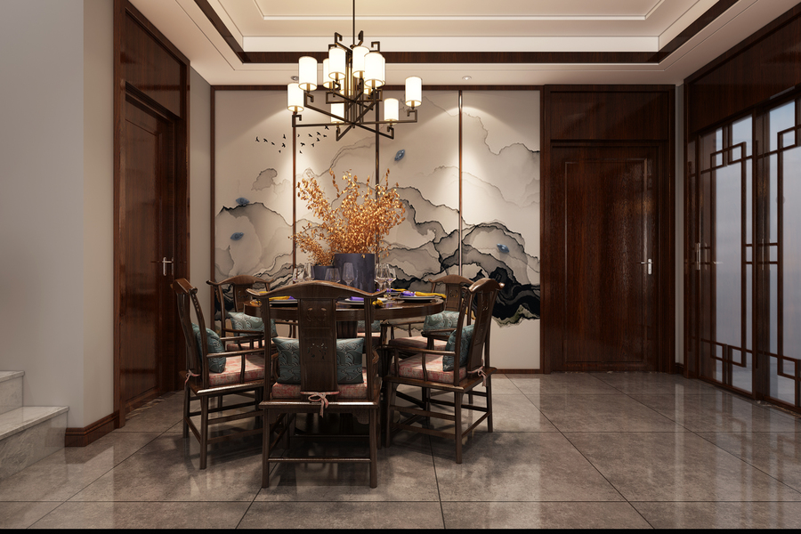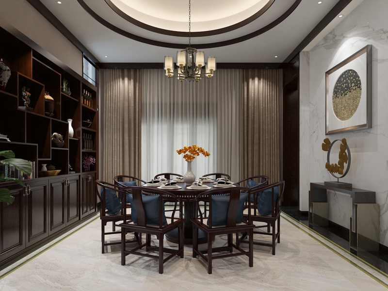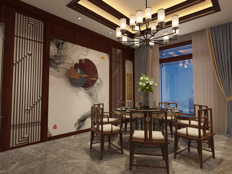 济南水岸连城460平方新中式风格-济南别墅装修案例