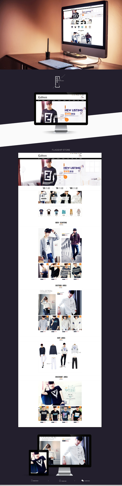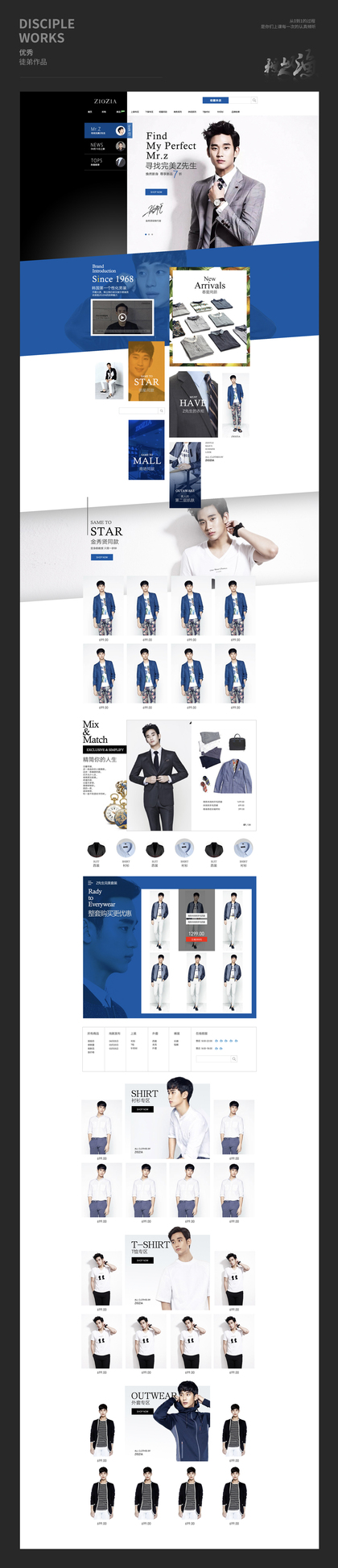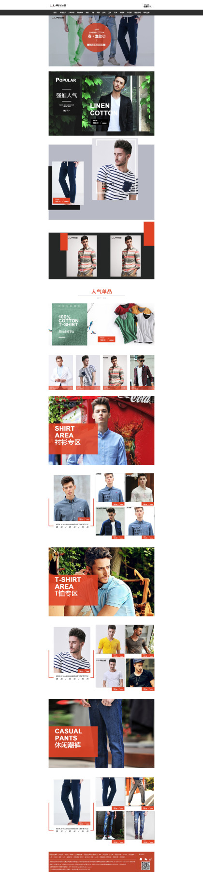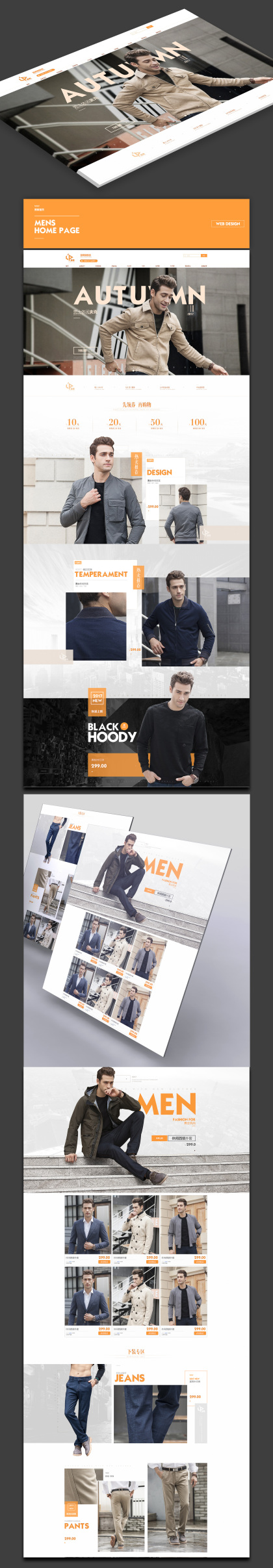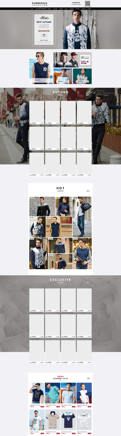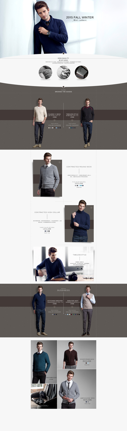 天猫淘宝男装服装简约品牌介绍首页二级页面设计排版