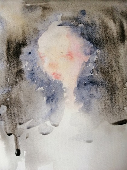 【一行写意水彩画】黑颈鹤——云在青天水在瓶