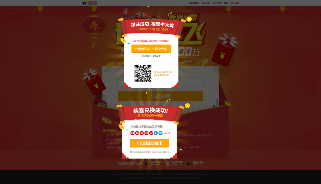 2015羊年 新年/元旦活动 新浪彩票让红包飞 祝您新春高中1000万