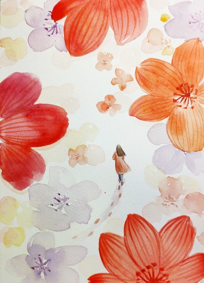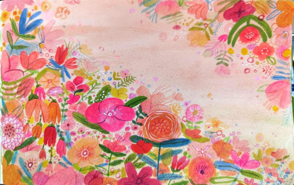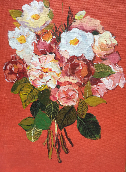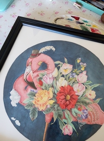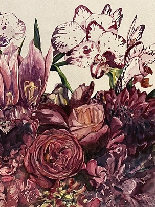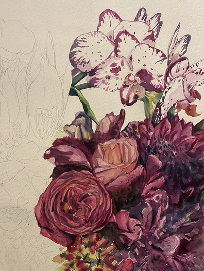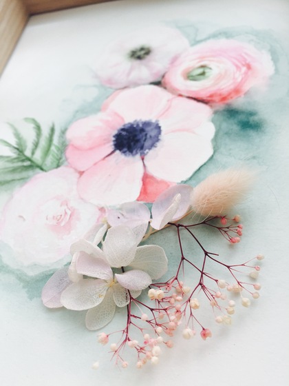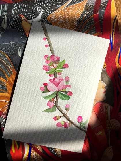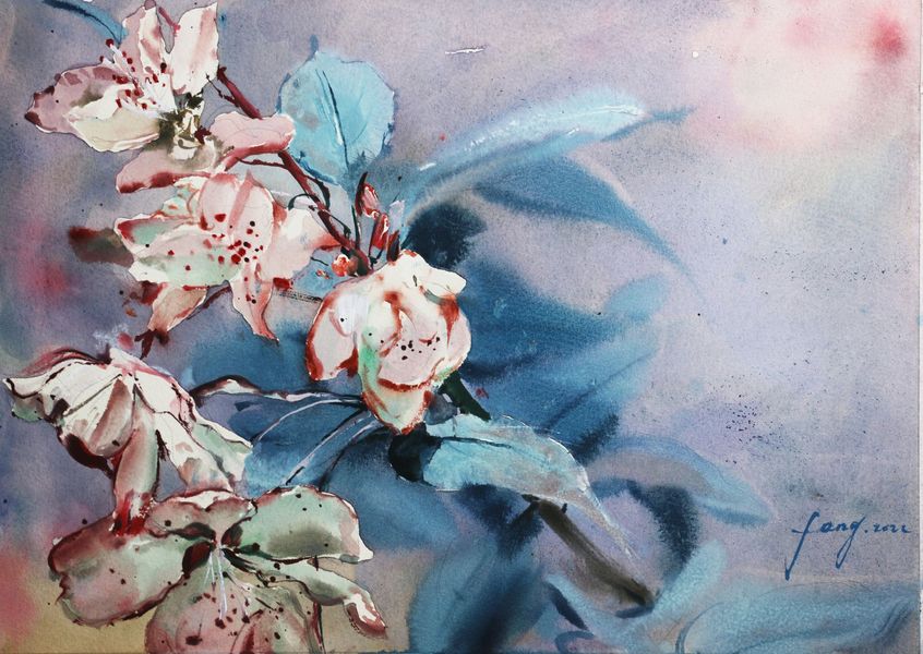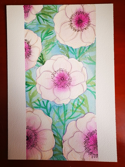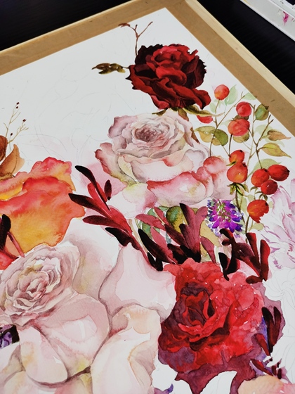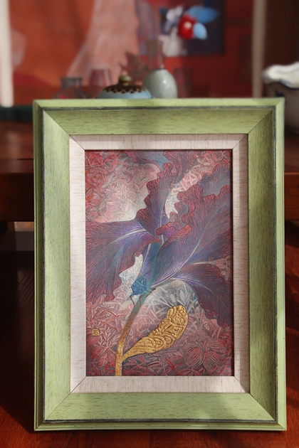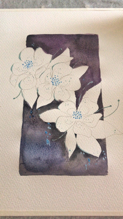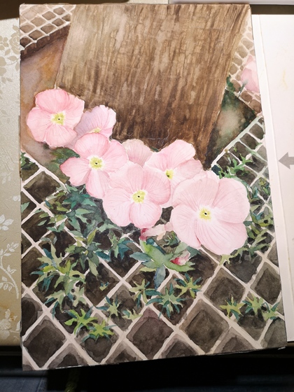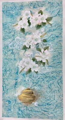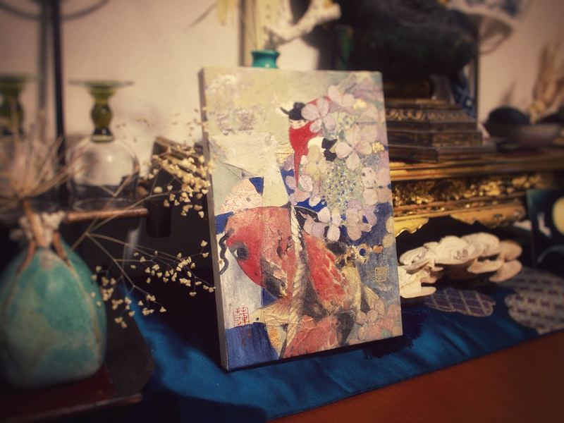 【岩彩】混合材料基底上绘制岩彩——紫阳花