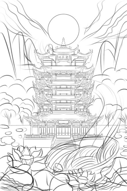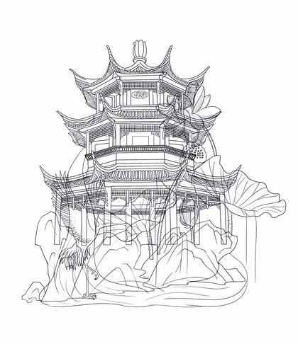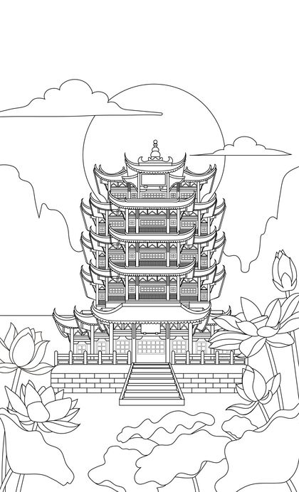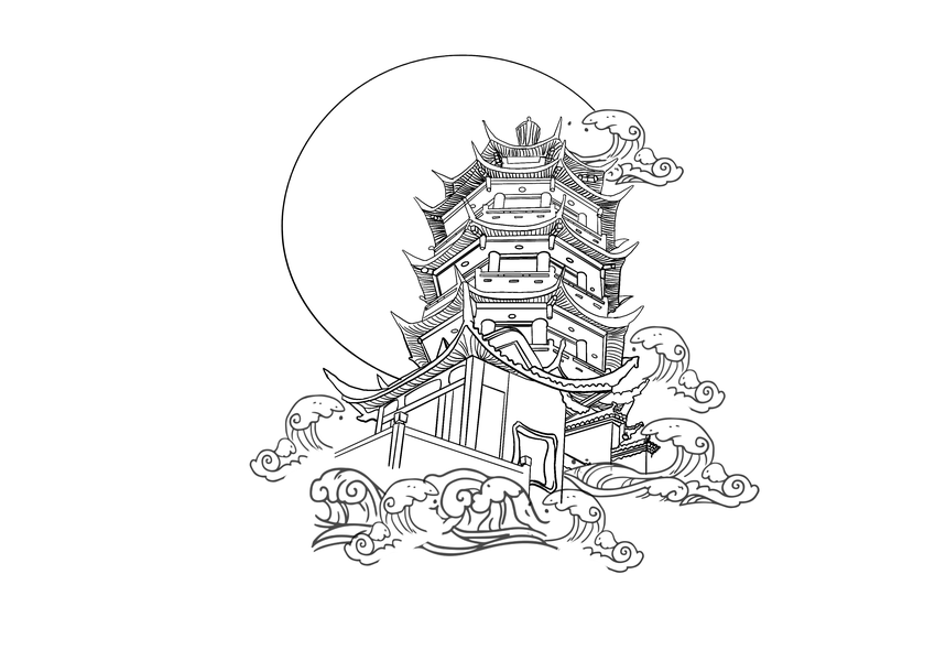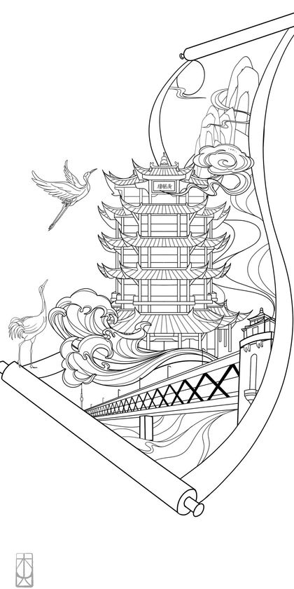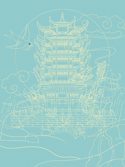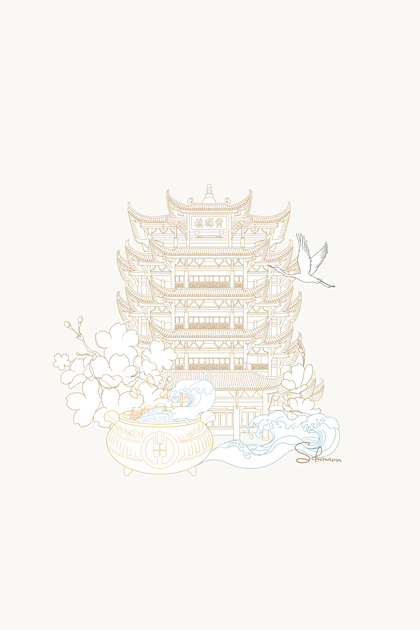 黄鹤楼手绘插画