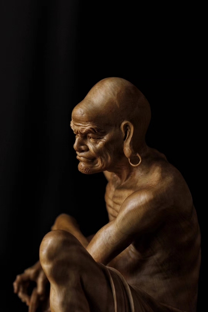 福在眼前 | 罗汉 黄杨木手工清刀制像 规格:31×17