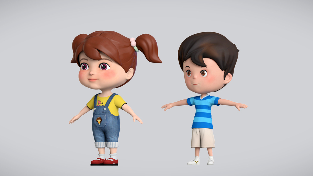 卡通人物三维建模动画角色三维人物小男孩卡通形象设计