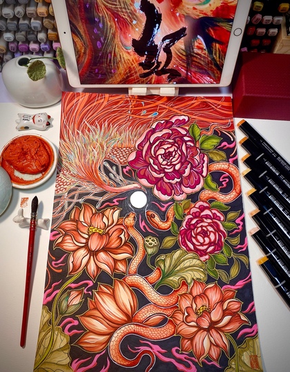 手绘貔恘和飞鹿🦌