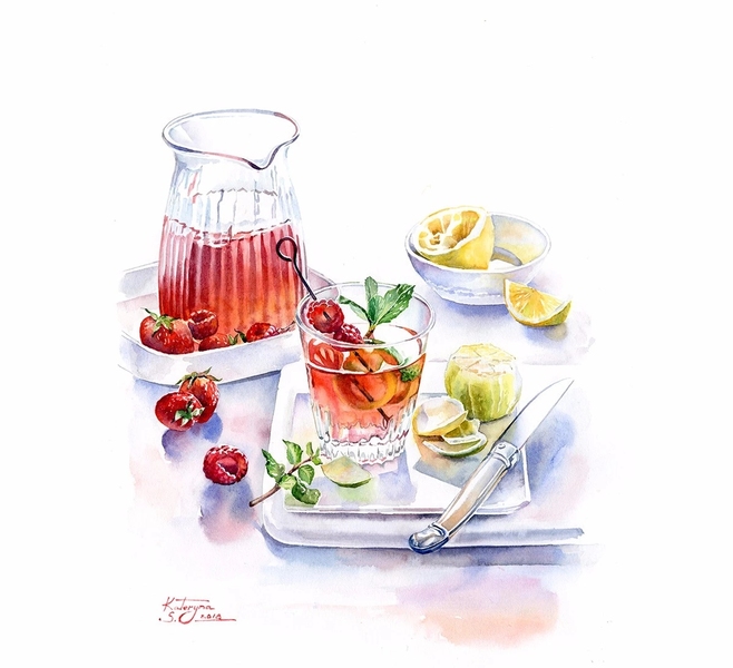 水彩夏日冷饮