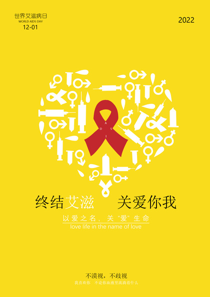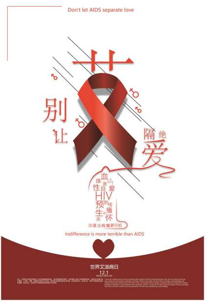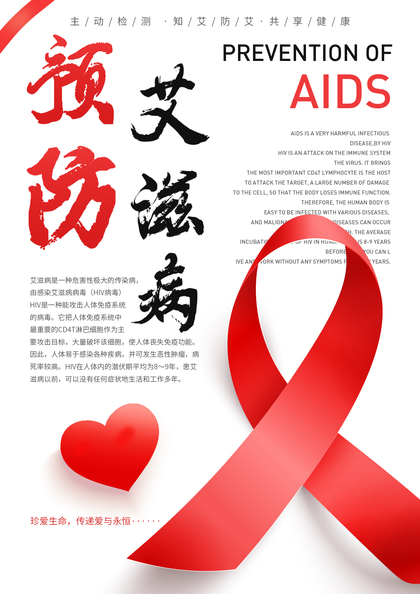 红色简洁珍爱生命预防艾滋公益宣传海报
