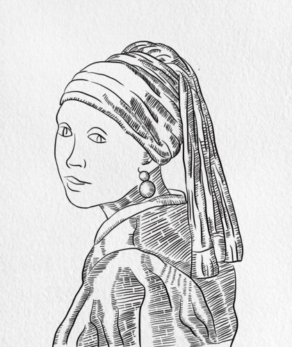 中世纪版画练习-戴珍珠耳环的少女包装设计