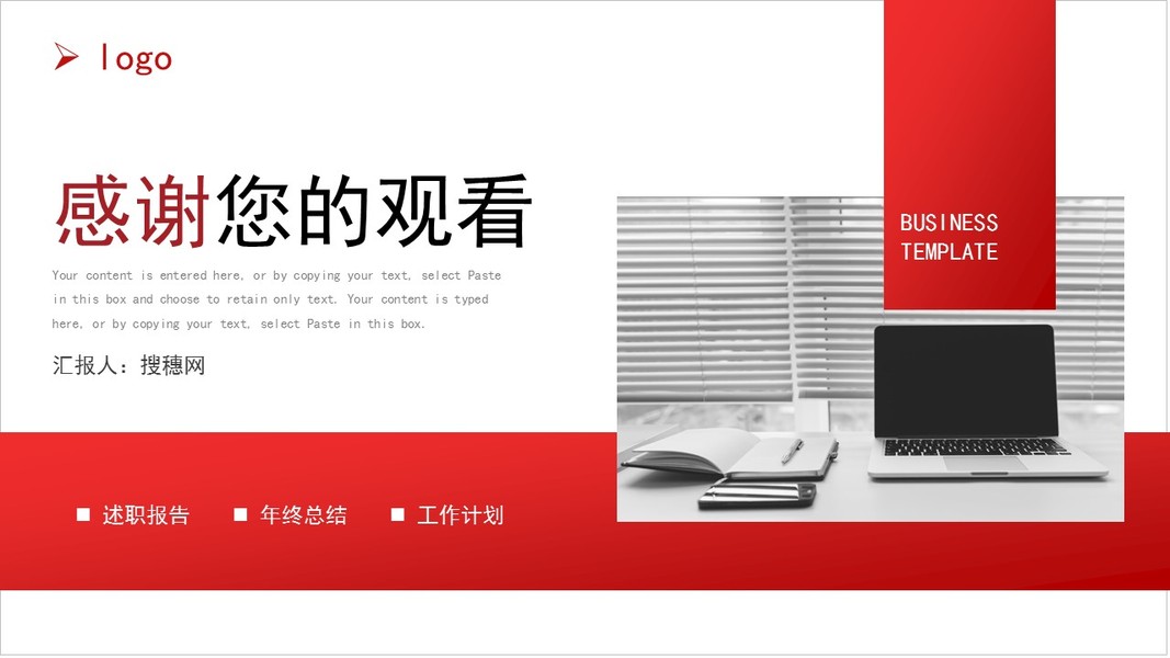 简洁红黑色商务企业工作总结项目汇报PPT模板