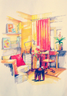 室内设计手绘作品分享(4)家居陈设马克笔色彩表达